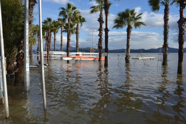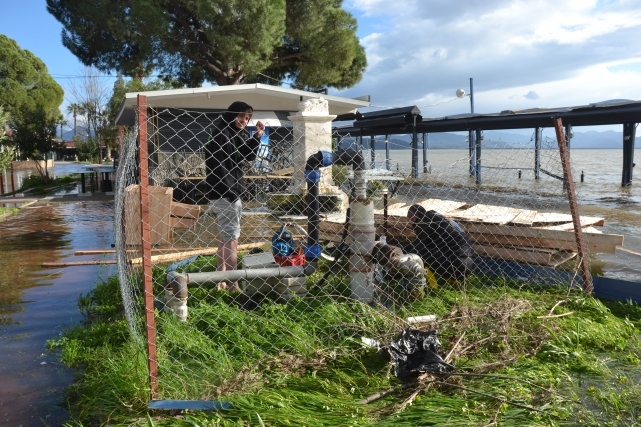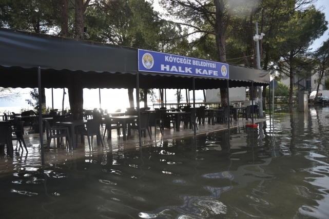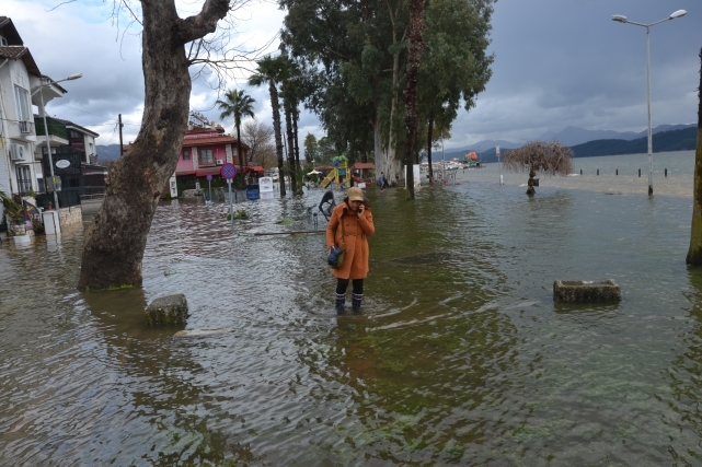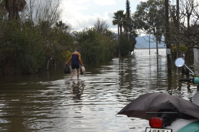 Köyceğiz kordon kenarında evi bulunan Nurcan hanım " Kaç gündür evime giremiyorum bu günde kontrole geldim. komşum burada ama oda tedirgin bir kaç ihtitacımı aldım dönüyorum. Şu an suyun içinde korkuyorum. gördüğünüz gibi burada suyun içinde elektrik panosu var suyun içinde tedirginim dün bir parça daha yüksek idi su bölgede herşey su altında burada zemin katta işyeri var sular altında işleri zor.allah yardımcımız olsun."dedi