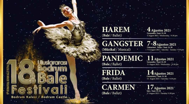 4-17 Ağustos 2021 tarihlerinde Bodrum Kalesi’nde gerçekleşecek olan “18. Uluslararası Bodrum Bale Festivali” kapsamındaki tüm etkinlikler saat 21.30’da başlayacak.