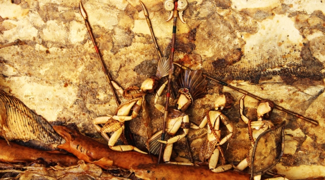 55 eserin sergilendiği sergide deniz ürünlerinden yapılmış tablolar büyük ilgi gördü. Eserleri arasında yer alan lejyoner büstü eserinde sakallar Marmara yosunundan, gövdesini deniz salyangozundan, miğfer ve yüzü iskorpit derisinden diğer tamamlayıcı unsurlar ise deniz kabuklarından yapıldı.