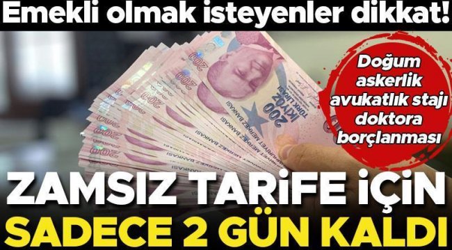 Emekli olmak isteyen ancak prim gün sayısı yetersiz olanların başvurduğu askerlik, doğum, avukatlık stajı ve doktora veya tıpta geçen uzmanlık süresi borçlanmasında zamsız tarifeden yararlanmak için sadece 2 gün kaldı. 2 gün içinde borçlanma işlemleri yapılmazsa yüzde 49,11 oranında zamlı olarak yapılacak.BORÇLANMA İŞLEMLERİ NASIL YAPILIYOR?Borçlanma işlemleri ister Sosyal Güvenlik Kurumu'na gidilerek istenirse de e-Devlet üzerinden gerçekleştirilebiliyor.Gözden KaçmasınAltından sene sonu rallisi! Yeniden rekor kırdıHaberi GörüntüleDOĞUM BORÇLANMASI TAVANI 2160 GÜNDoğum borçlanmasında her bir çocuk için 720 gün borçlanılabiliyor. Başka bir deyişle her çocuk için 2 yıllık süre borçlanılıyor. 3 çocukla sınırlandırılan borçlanma böylece 6 yıl ve 2160 güne çıkıyor.BORÇLANMA ÜCRETLERİ NE KADAR?Doğum, askerlik, avukatlık stajı, doktora veya tıpta geçen uzmanlık borçlanması için 2023 yılı tarifesi günlük en düşük 143 lira, günlük en yüksek 1073 liraydı. 2024 yılı için günlük en düşük 213,2 lira, günlük en yüksek ise 1600 lira oldu.