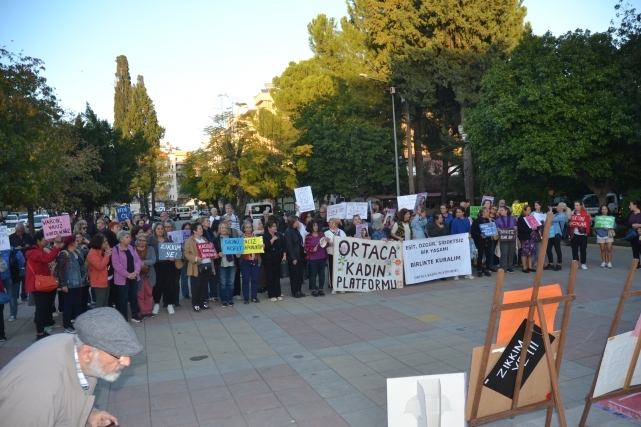 Ortaca da 110 Cadde kavşağında tolanan çok sayda kadın ve destek için gelen erkeklerle beraber Atatürk Bulvarı üzerinde ellerinde ankart ve dövizlerle yürüyerek Cumhuriyet meydanında basın açıklamasında bulundular.