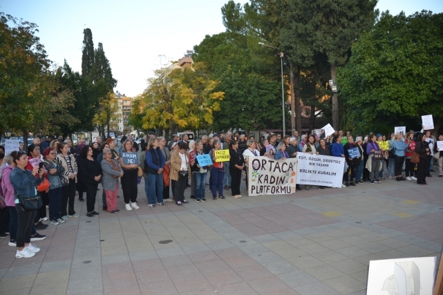 Açıklamayı Ortaca Kadın Platformu adına Döndü Taka Çınar okudu."Şiddetin hiçbir bahanesi yoktur! Gelin, yan yana duralım. Birlikte güçlenelim, birlikte değiştirelim!