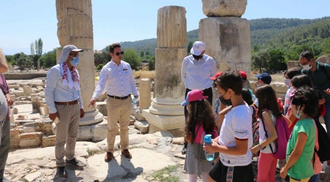 İl Milli Eğitim Müdürü Emre Çay, Milli Eğitim Bakanlığının başlattığı ‘Telafi de Ben de Varım’ programı kapsamında, çocuklarla birlikte telafi eğitimi programında yer alan etkinlikleri gerçekleştirmeye devam ettiklerini söyledi. Çay, “Stratonikeia’da aslında çocuklarımızı, bir zaman yolculuğuna çıkardık. Birçok dönemi içinde barındıran bir antik kentteyiz. Buradaki amacımız pandemi dönemindeki birtakım olumsuz olabilecek durumlara karşı çocuklarımızı hem psikolojik hem sosyolojik hem de akademik yönlü olarak desteklemek; yaparak yaşayarak ve eğlenerek öğrenebilecekleri ortamlarla ve etkinliklerle onları buluşturmak istiyoruz. ‘Telafide ben de varım’ diyen tüm öğrencilerimizle birlikte, 6 Eylül’de yeni eğitim öğretim yılına sağlıklı ve huzurlu bir şekilde ulaşmayı bekliyoruz” dedi.