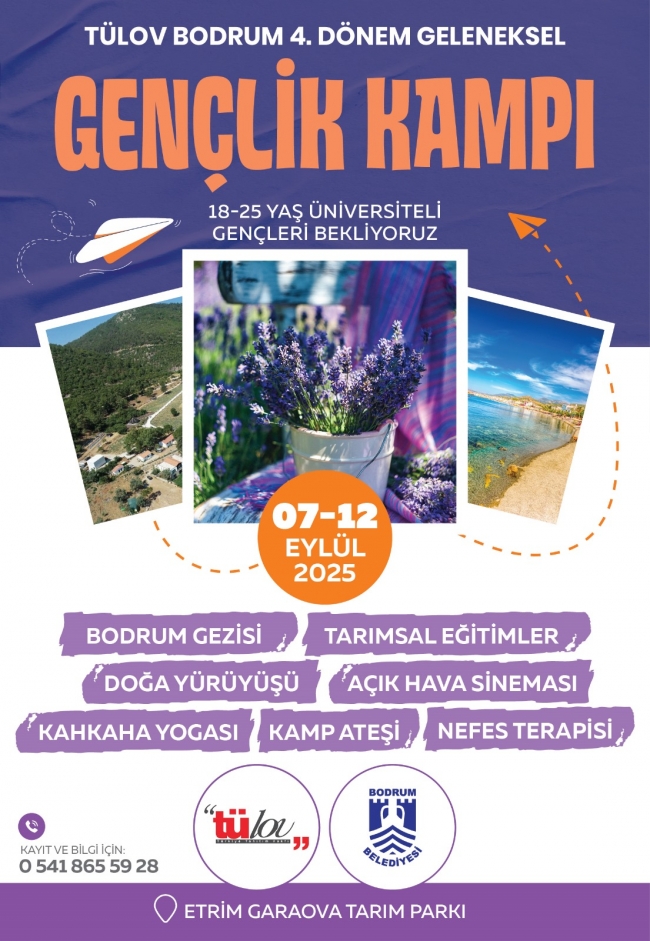 Türkiye Tanıtım Araştırma Demokrasi ve Laik Oluşum Vakfı TÜLOV Bodrum Temsilciliği ve Bodrum Belediyesi iş birliğiyle düzenlenen 4. Dönem Geleneksel Gençlik Kampı, 7-12 Eylül 2025 tarihleri arasında Bodrum da gerçekleştirilecek.