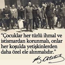 Hani Mustafa Kemal Atatürk “Vatanı korumak, çocukları korumakla başlar, Çocuklar her türlü ihmal ve istismardan korunmalı, onlar her koşulda yetişkinlerden daha özel ele alınmalıdır" diye vasiyet etmişti…
